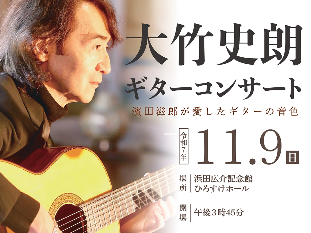 大竹史朗が懇意にしていた音楽評論家・故濱田滋郎さんのお父さまである、日本を代表する童話作家浜田広介さんの記念館でコンサートを行います。